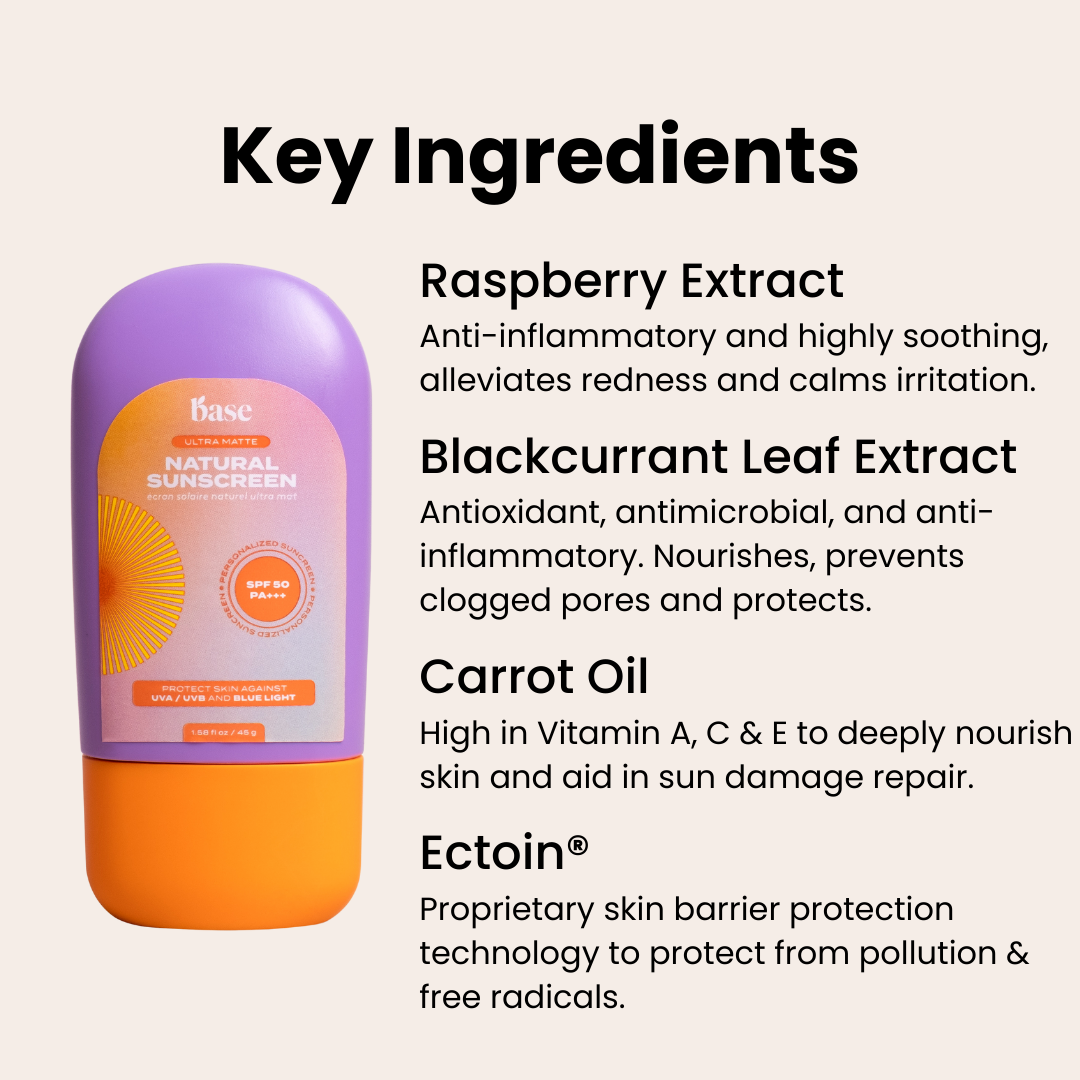 In Base Ultra Matte SPF50, we use a combination of Octocrylene & Zinc Oxide to create a hybrid Chemical & Physical Sunscreen.